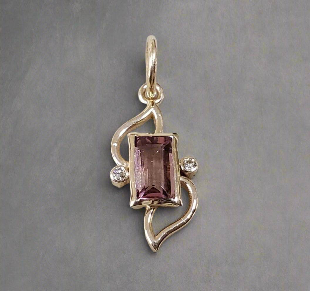 Baguette Pink Tourmaline and Diamond Gold Pendant