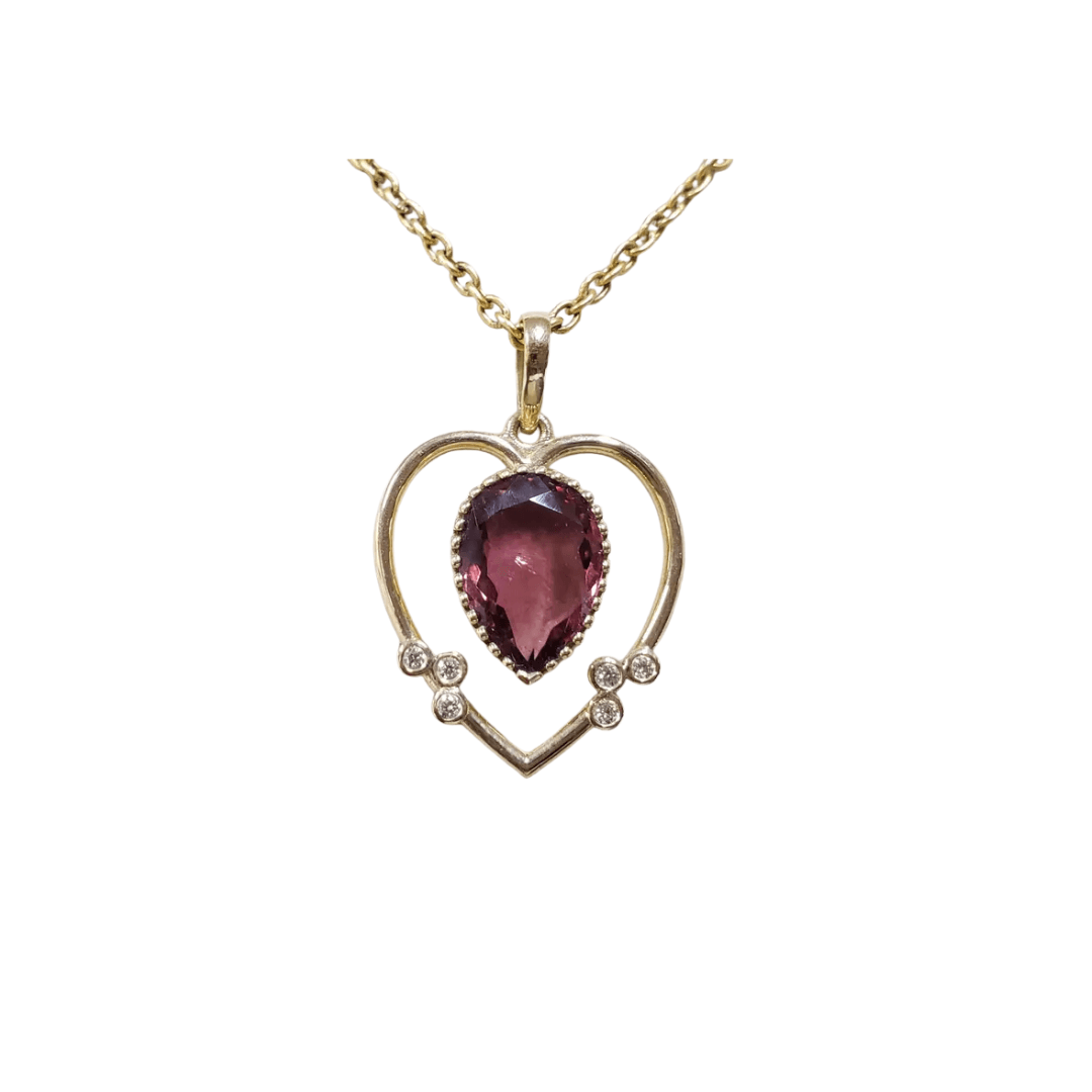 Romantic Design: Heart-shaped pendant with pink tourmaline & diamond accents.