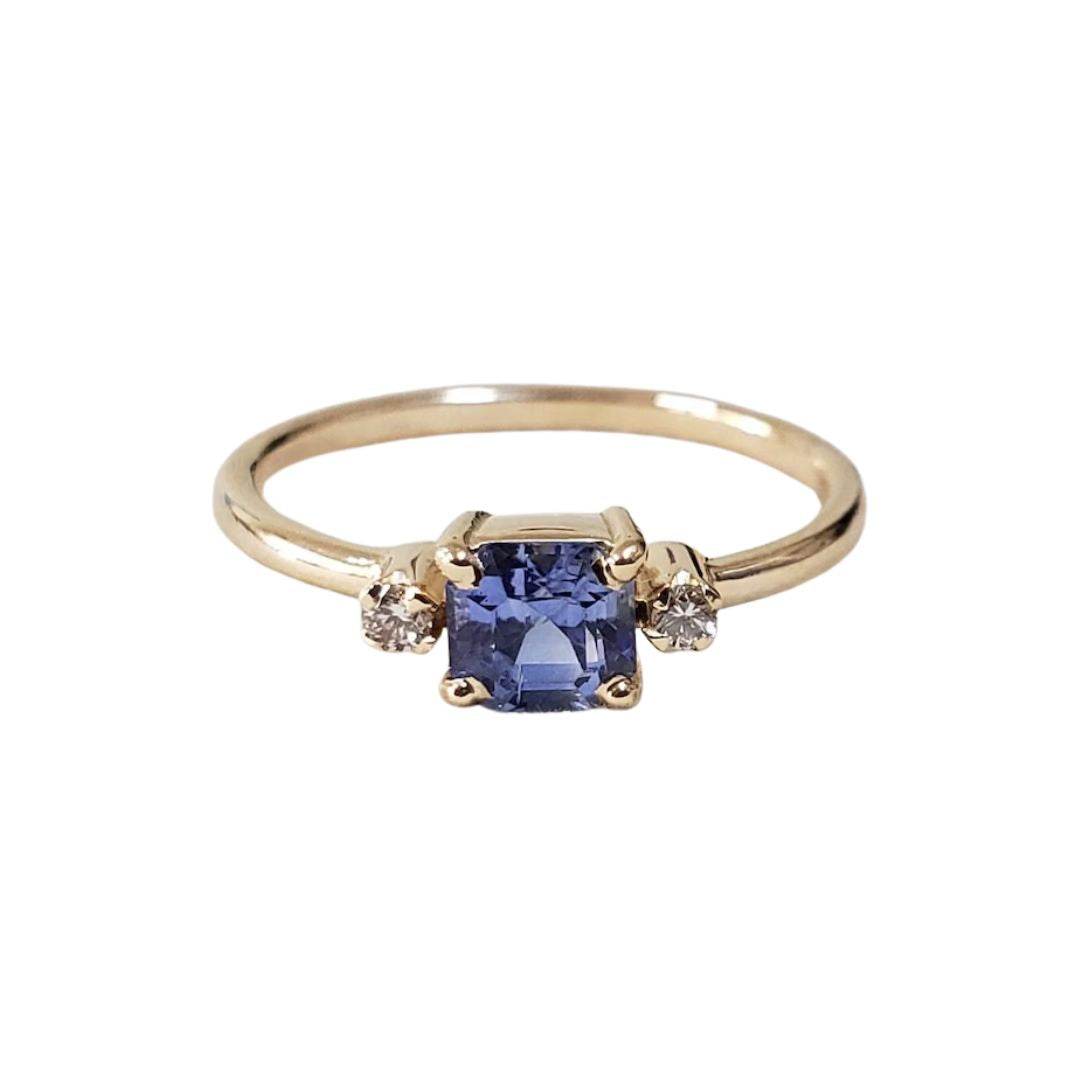 Princess Cut Tanzanite 14k Gold Ring with Diamond Accents