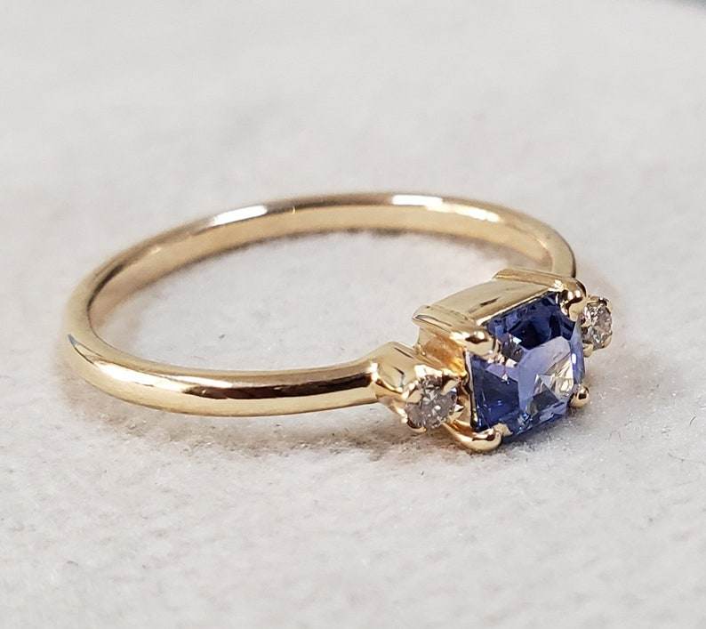 Add a royal touch to your jewelry collection with this Princess Cut Tanzanite 14k Gold Ring with Diamond Accents. Designed for modern elegance and everyday luxury, this handmade ring combines the stunning violet-blue brilliance of Tanzanite with the timeless sparkle of natural diamonds — creating a piece that is both refined and radiant.
