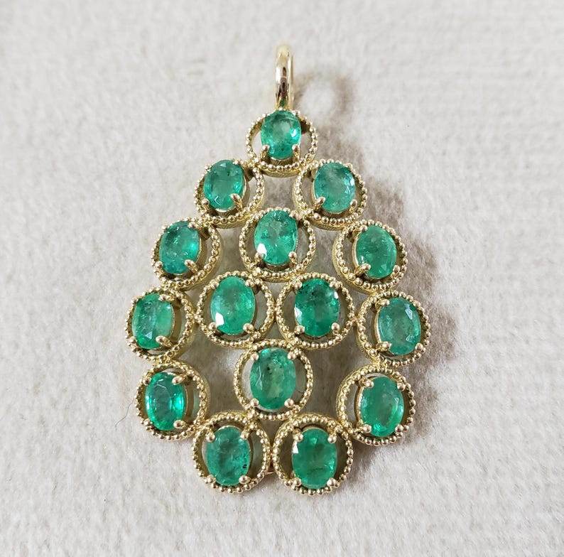 14k Gold Zambian Emerald Pendant: Handmade Oval Halo Setting