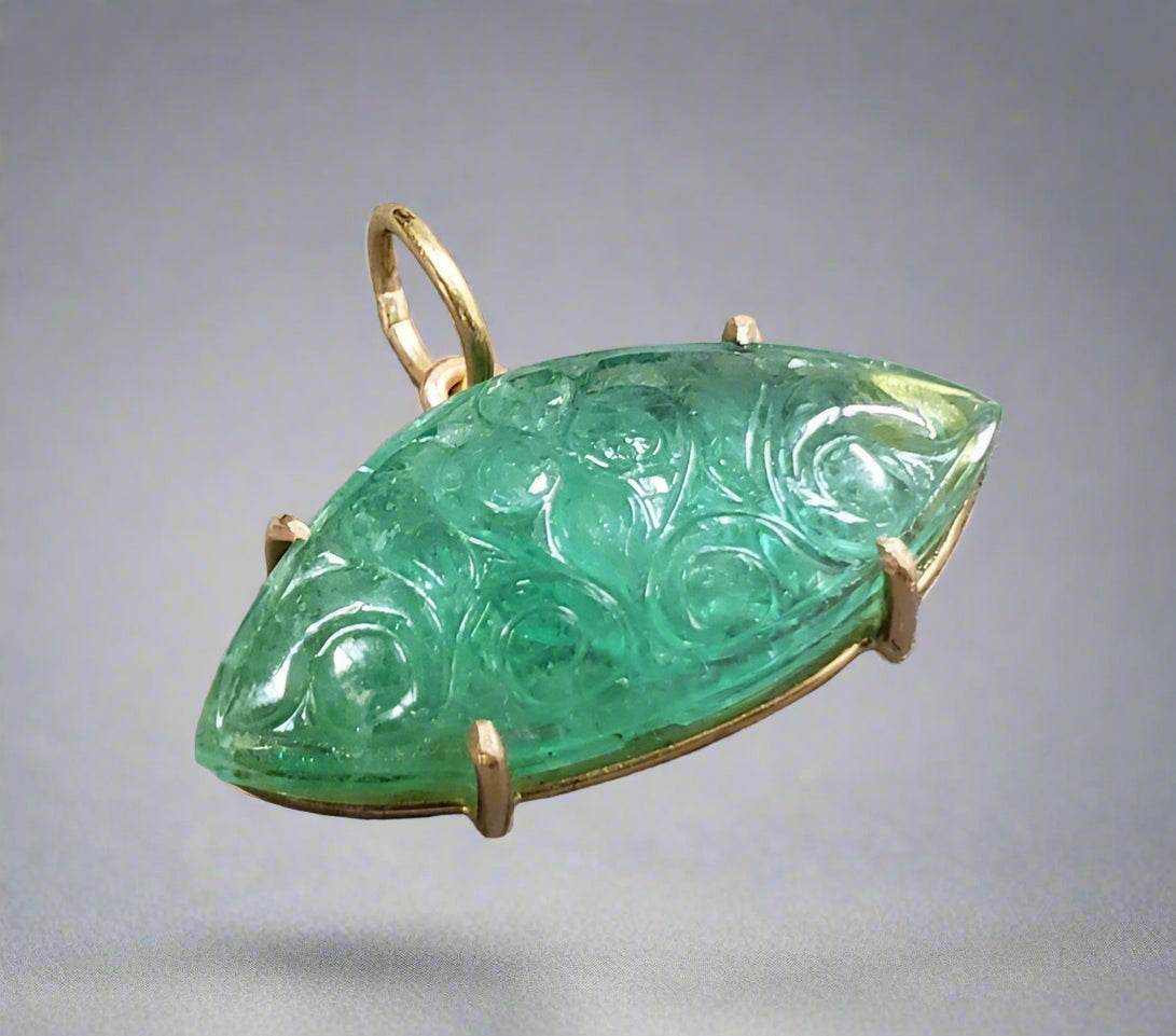 - Pendentif en or 18 carats avec émeraude zambienne sculptée