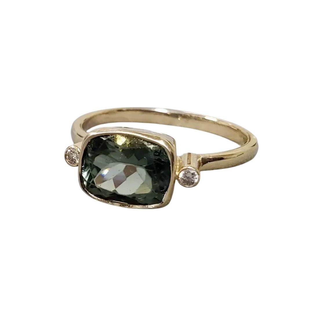 14k Gold Tourmaline Ring: Cushion Cut Diamond Accent