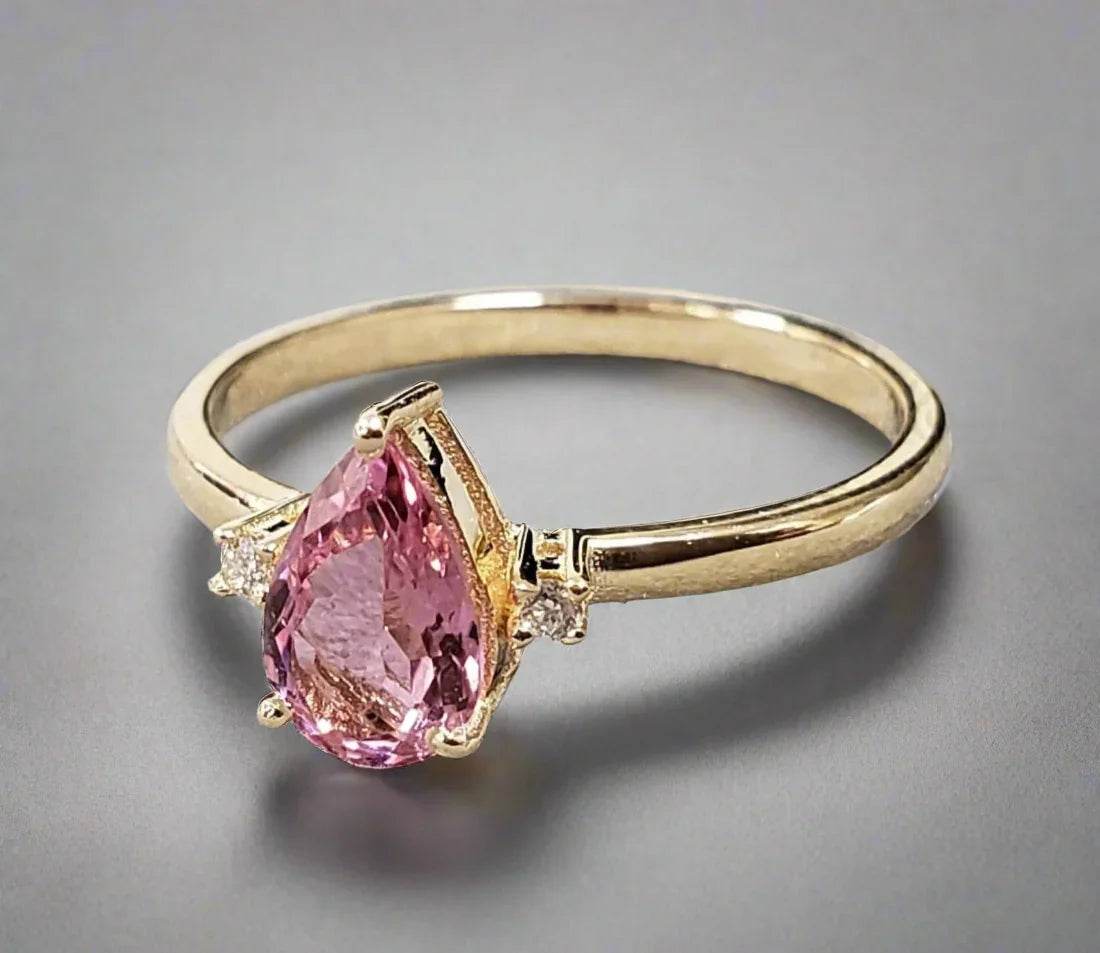 Pink Tourmaline Diamond Ring – 14k Gold Handmade Elegance
