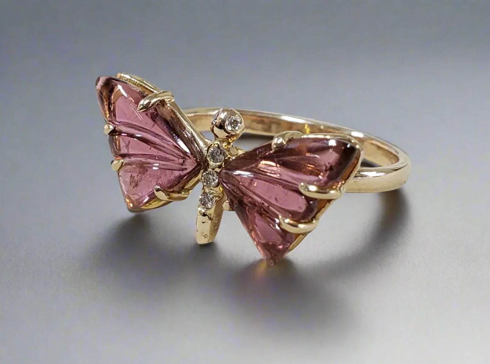 Pink Tourmaline Diamond Ring – 14k Gold Butterfly of Hope & Love
