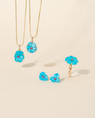 Our 14k Gold Floral Pendant is a masterpiece of craftsmanship. It features a princess-cut green tourmaline at the center, surrounded by sparkling diamonds and ruby accents, forming a delicate flower design. Every pendant is handmade and stamped for gold authenticity, ensuring you receive a true work of art.
