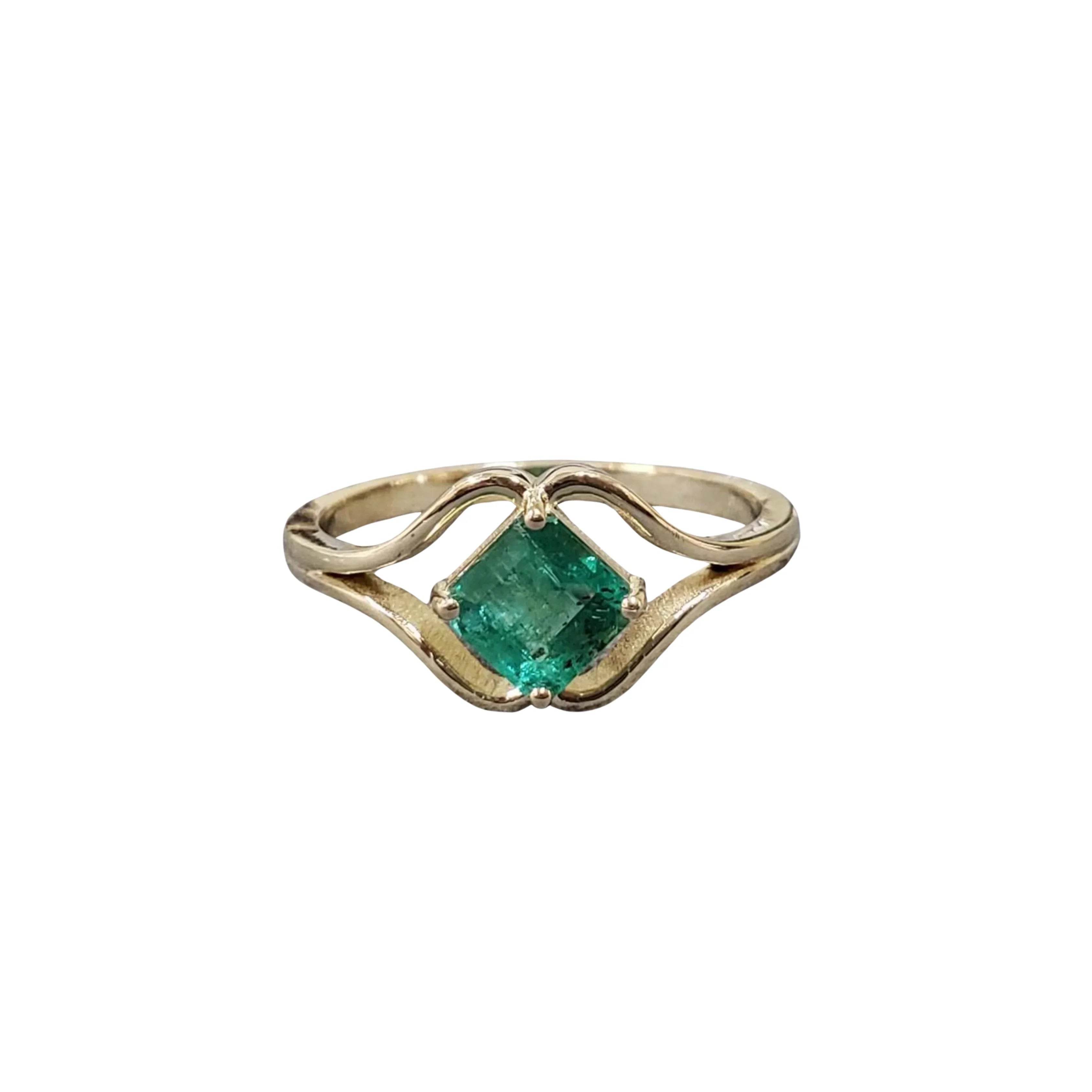Emerald 14k Gold Ring – Asscher Cut Elegance in Every Detail